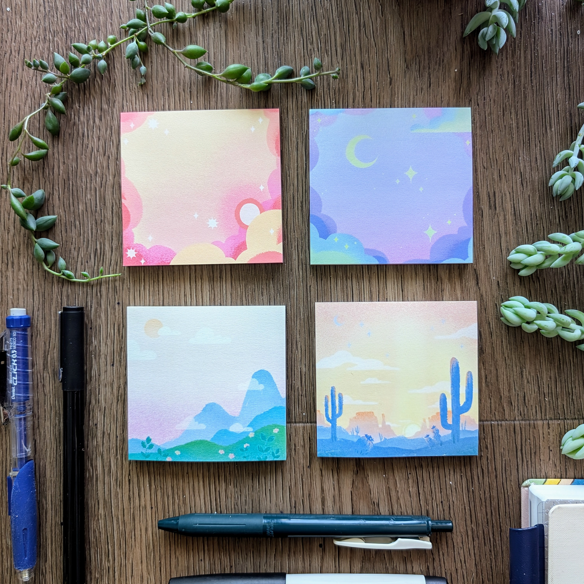 Items in my Personal Shop! I love finding ways to make my art feel usable and interactive, whether it's sticky notes, unique bookmarks, keychains, stickers, or greeting cards fit for any occasion.